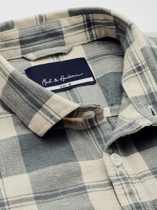 Olive green other checks checked opaque Casual shirt ,has a spread collar, button placket, 1 patch pocket, long regular sleeves, curved hem